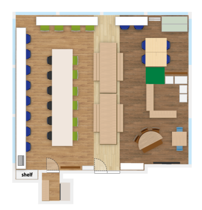 オンラインミーティング用の防音個室「ぼっちボックス」とオオサカンスペースのレイアウトも置いときますね。