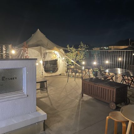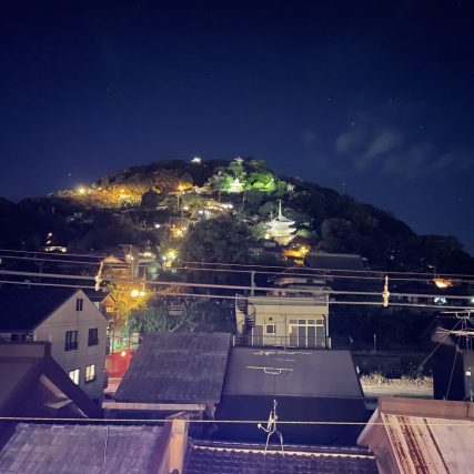 屋上はオシャレなテラスになってて、ライトアップされた千光寺を眺めながら夜風に吹かれたり、
