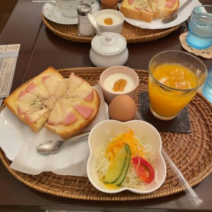 翌朝はホテルからいただいたモーニングチケットを片手に、商店街から少し外れたところにある昭和レトロな喫茶店「ティールーム リオ」さんでモーニング。